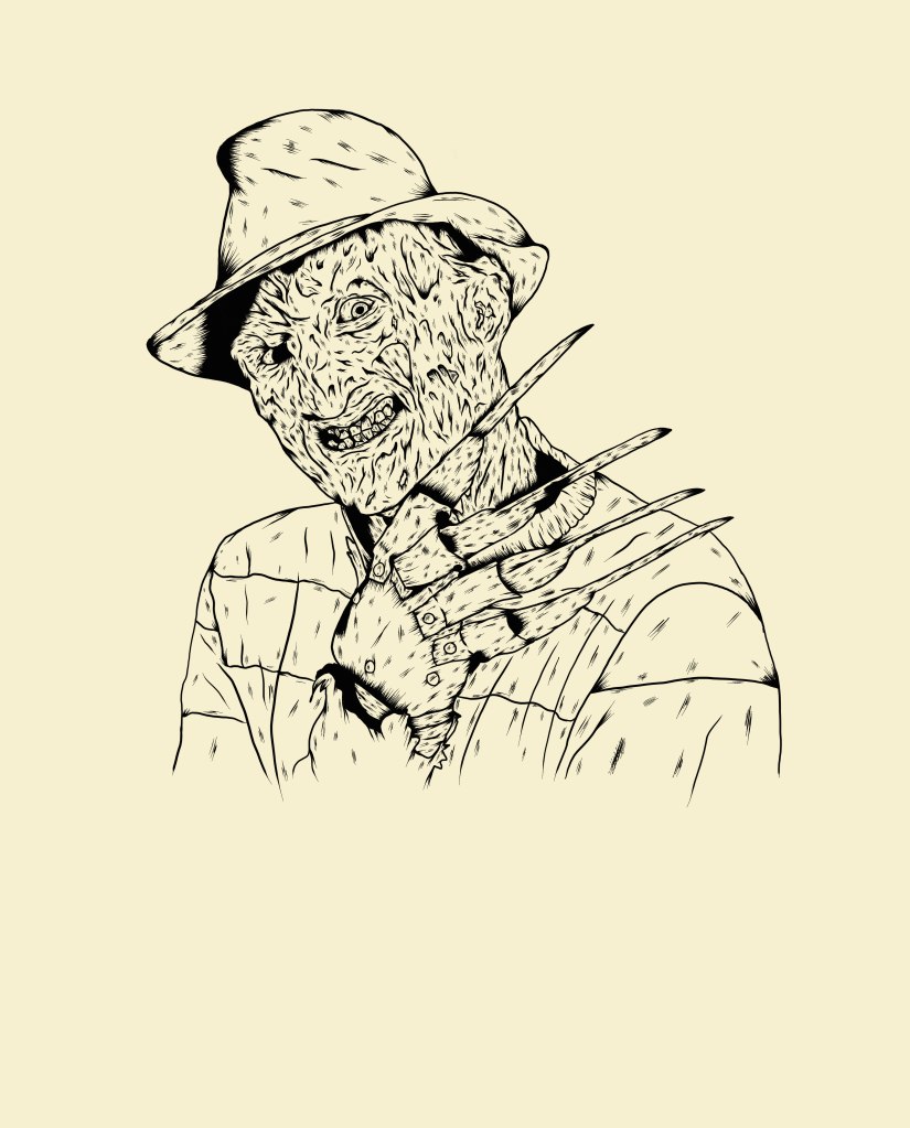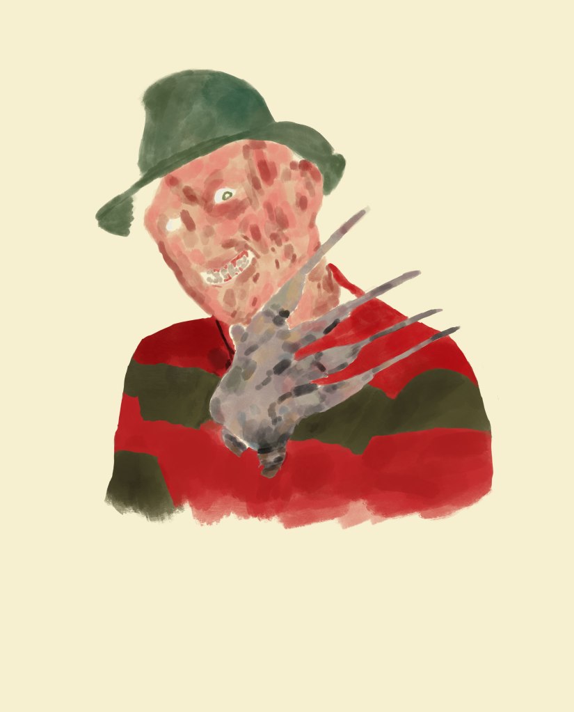 Digital Gouache painting of Freddy Krueger from the classic horror movie Nightmare on elm street.
