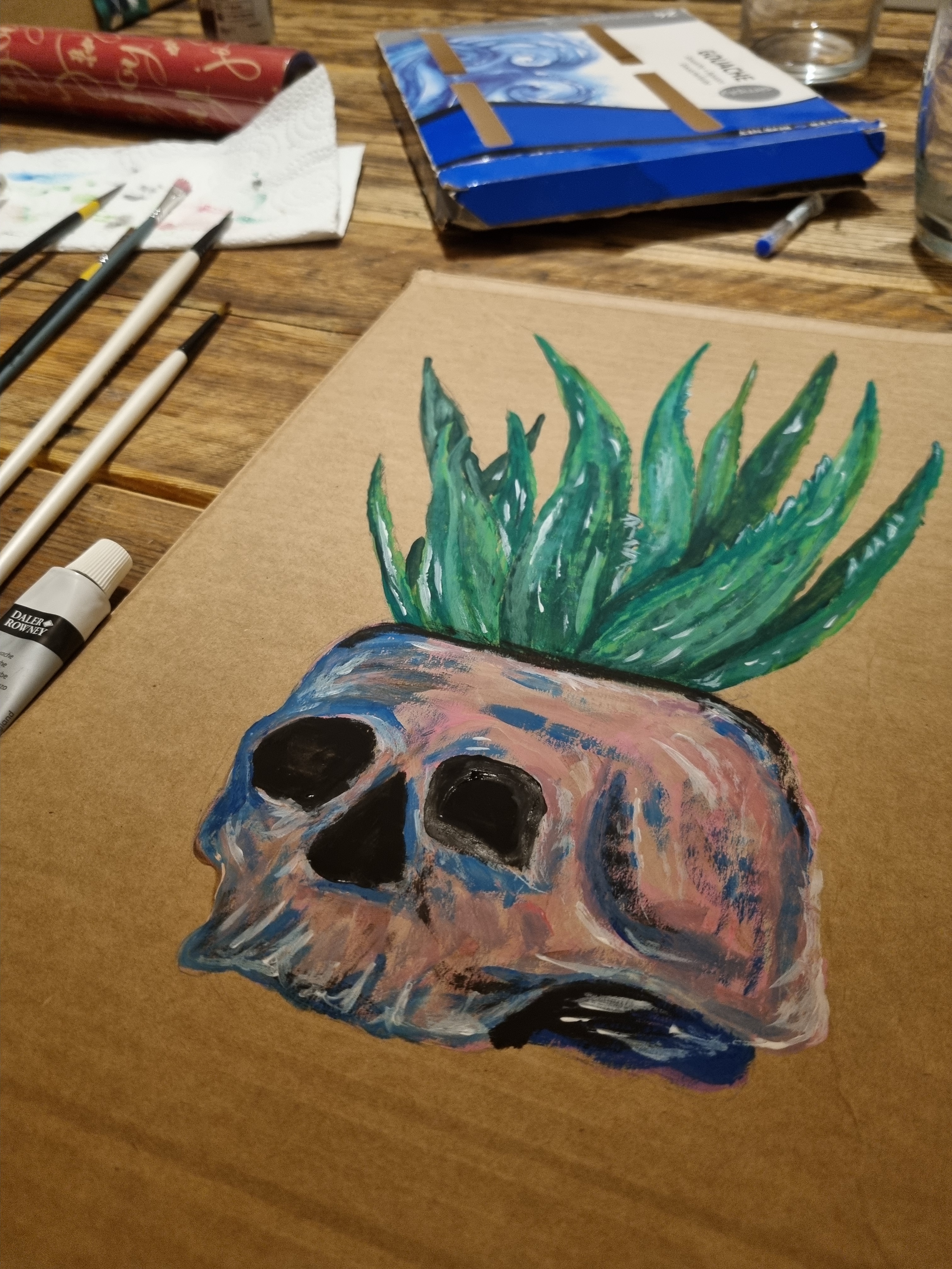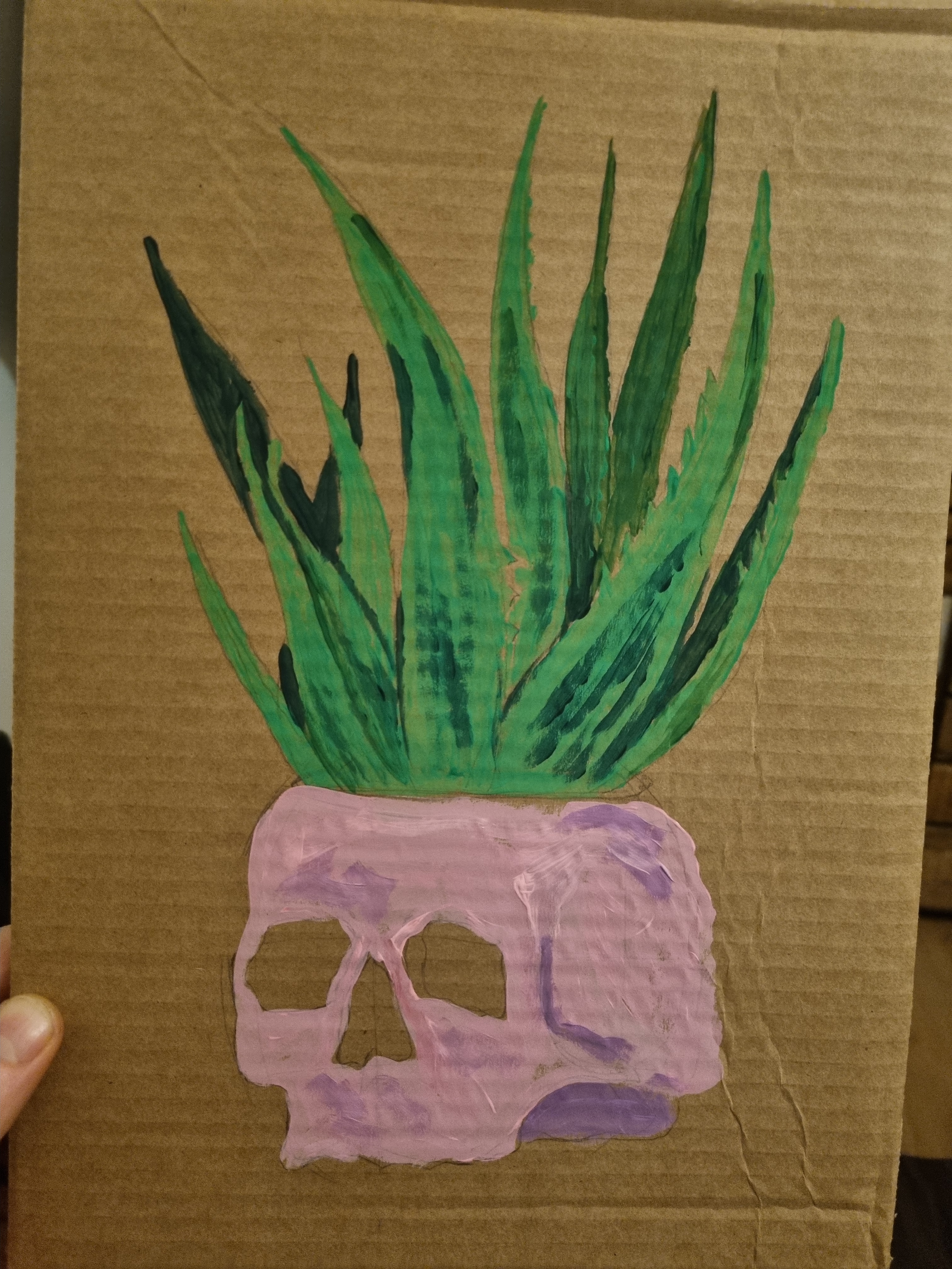 Recently, I have been trying to get back into painting more. Watching a Jason Dill talk and how he said to be creative on everything gave me the push to start again. Picking up some gouache paint I was gifted at Christmas a few years ago I have been trying to develop my own style. Here is a test on some cardboard.