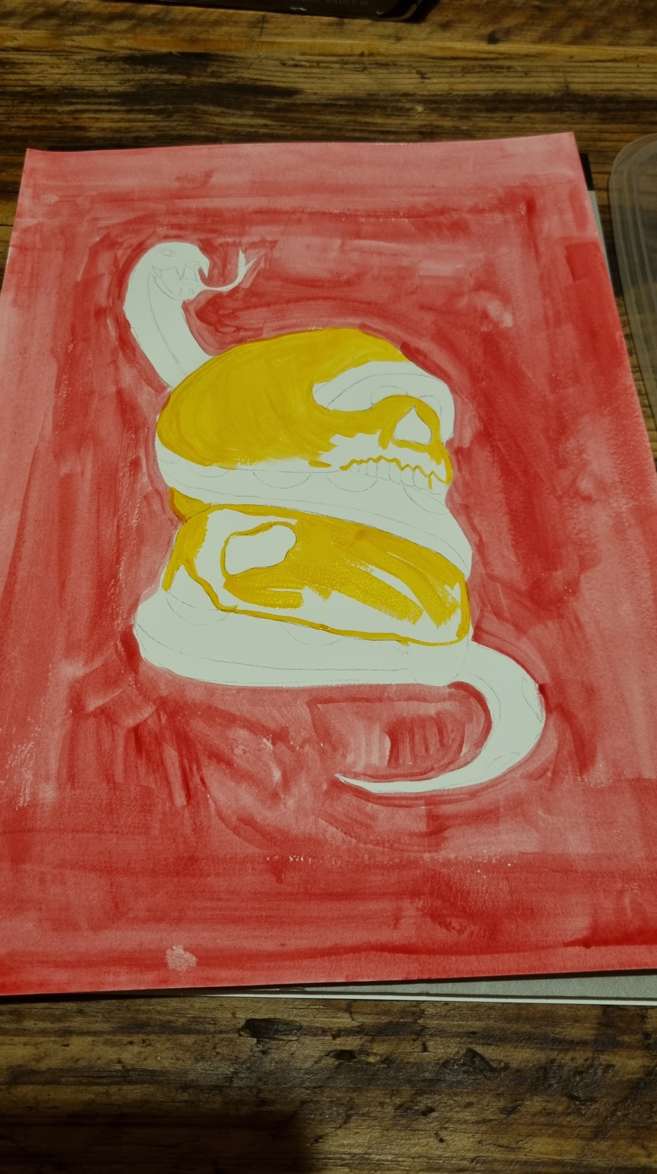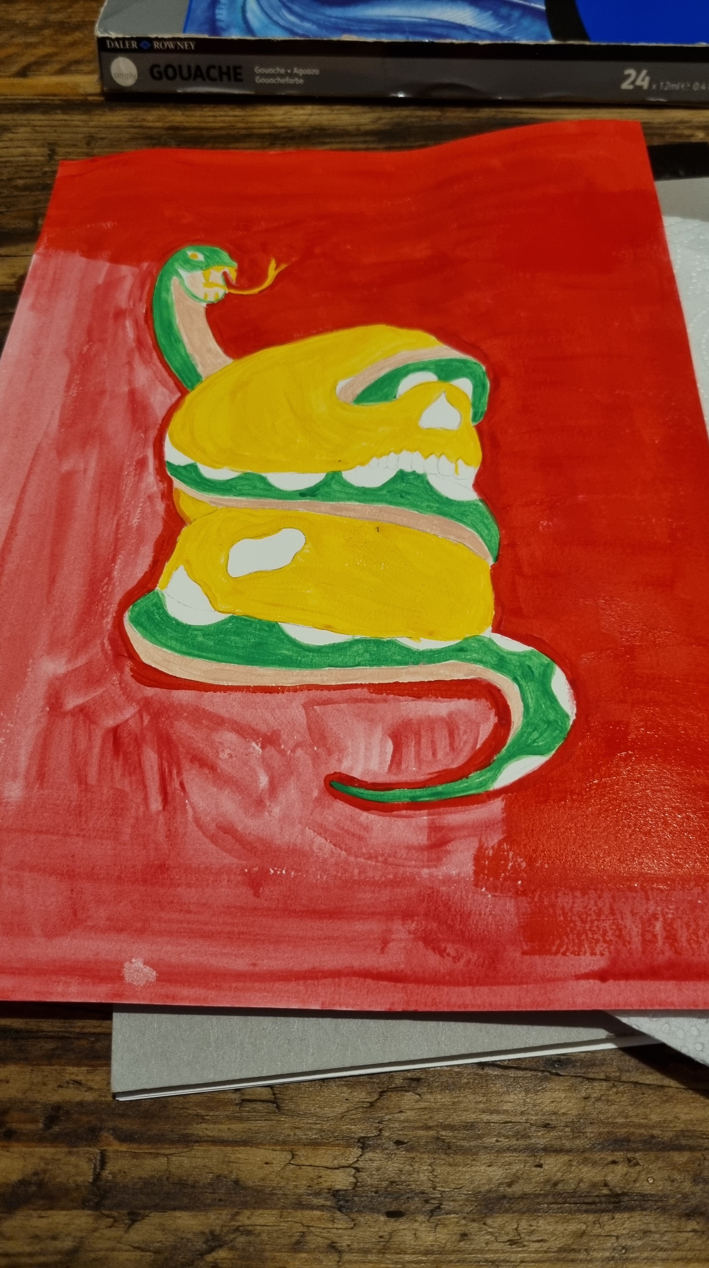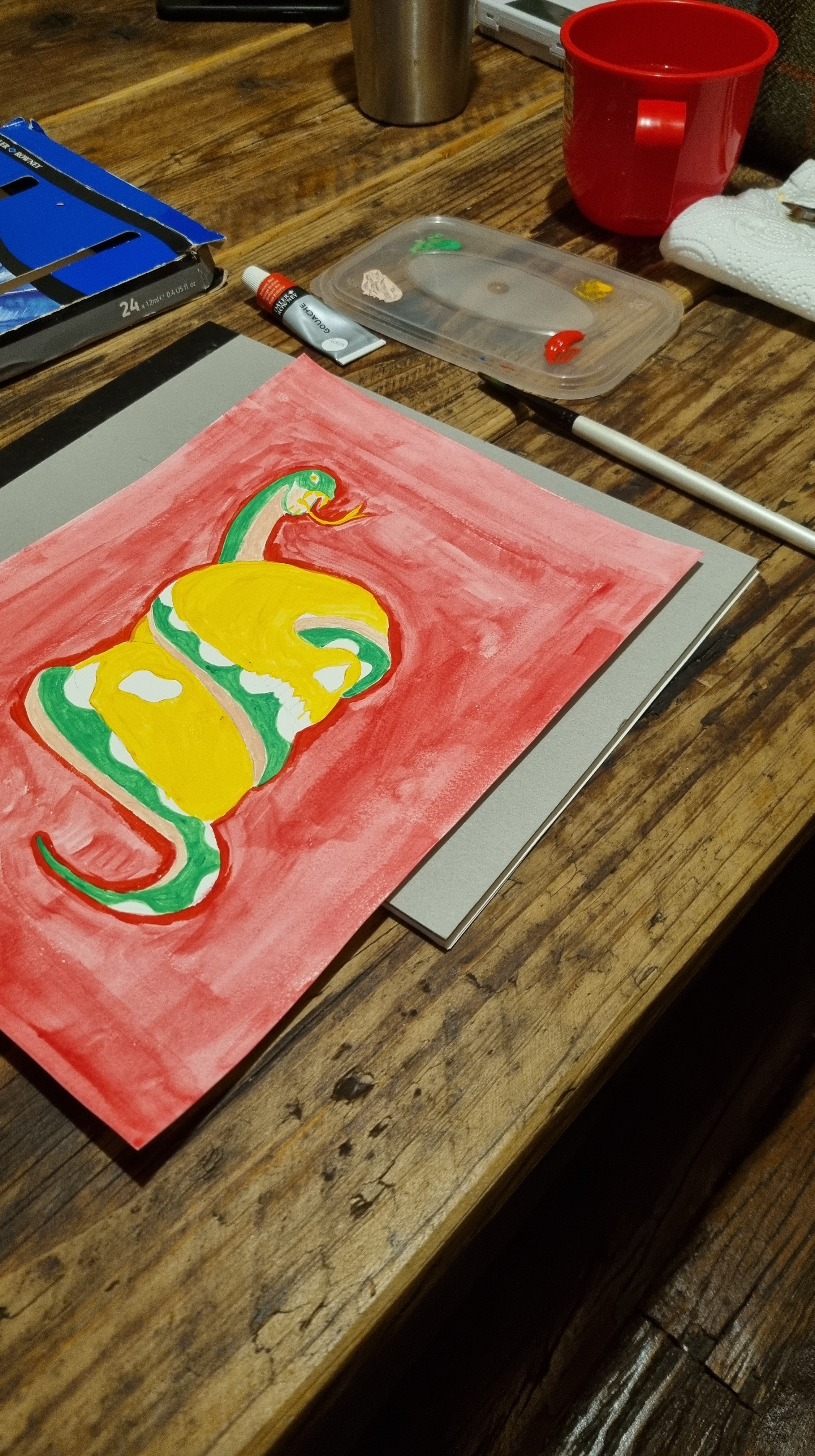 Using my ipad as a light box to trace over my artwork. Once traced onto A4 acrylic paper I then have used Goauche to paint in the colour.