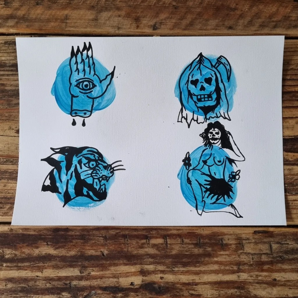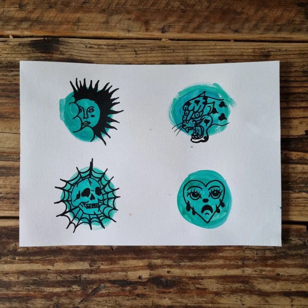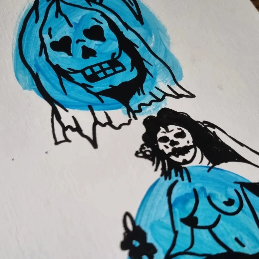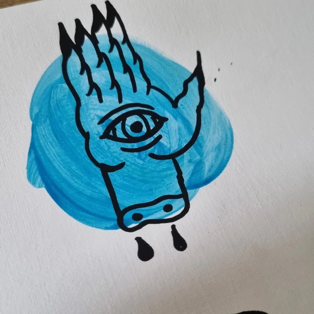 Acrylic paint with market pen.