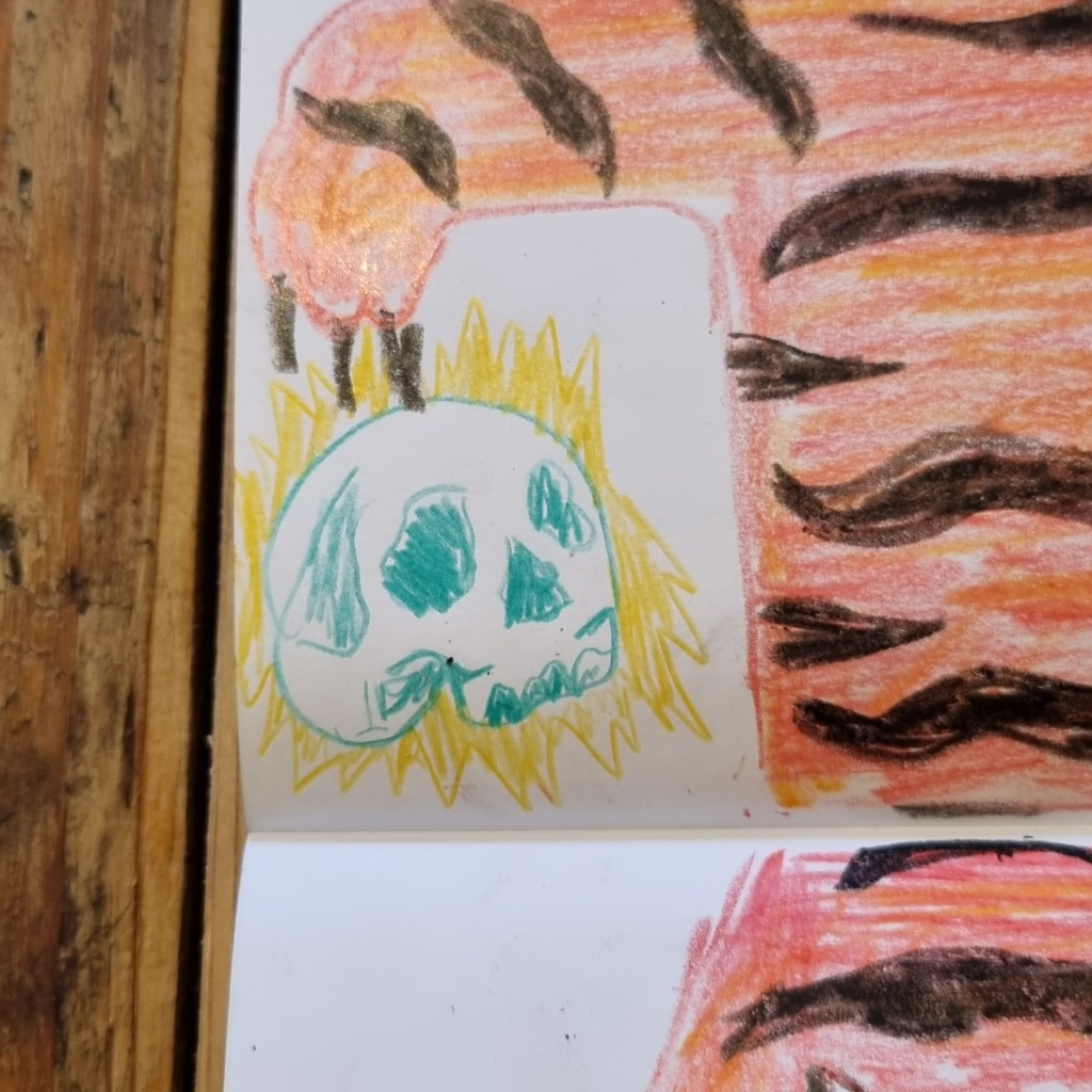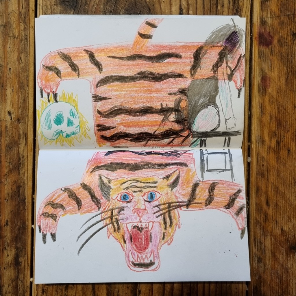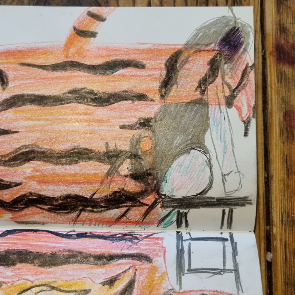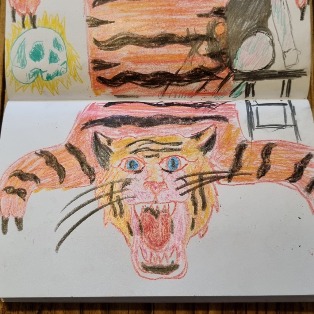Mixed Media tiger sketch using crayon pencils and fineliners