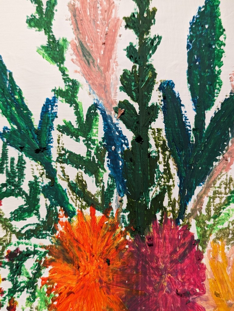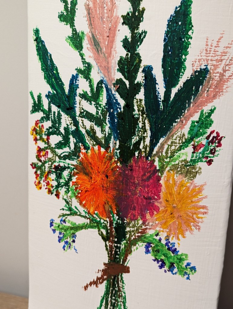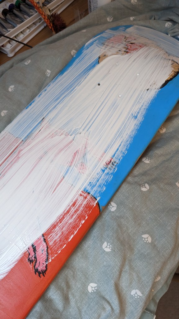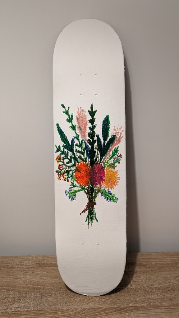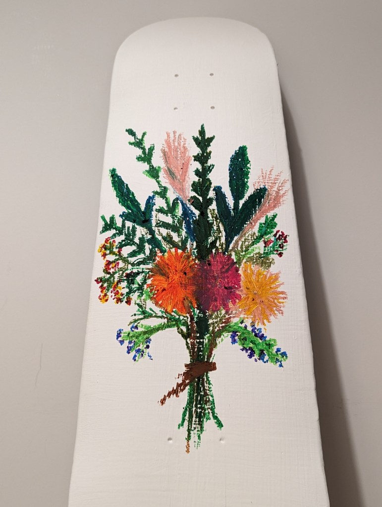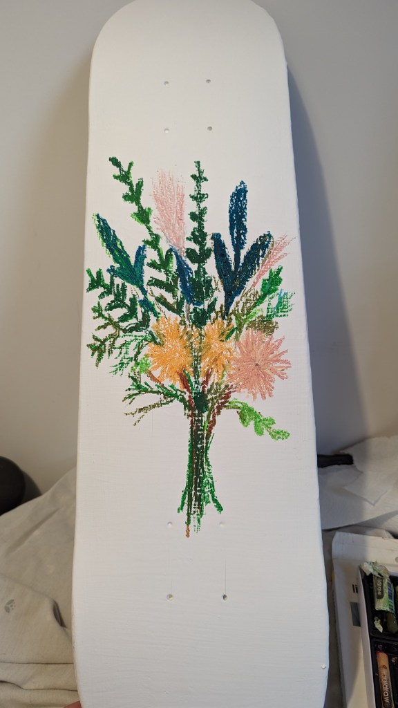 Oil pastel on a skateboard deck