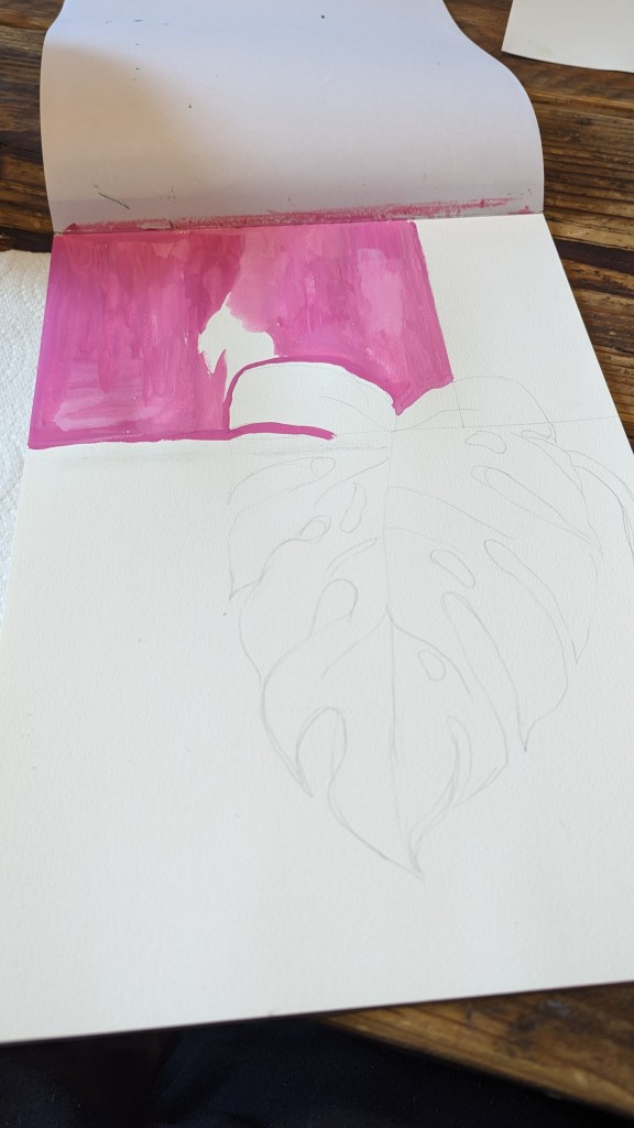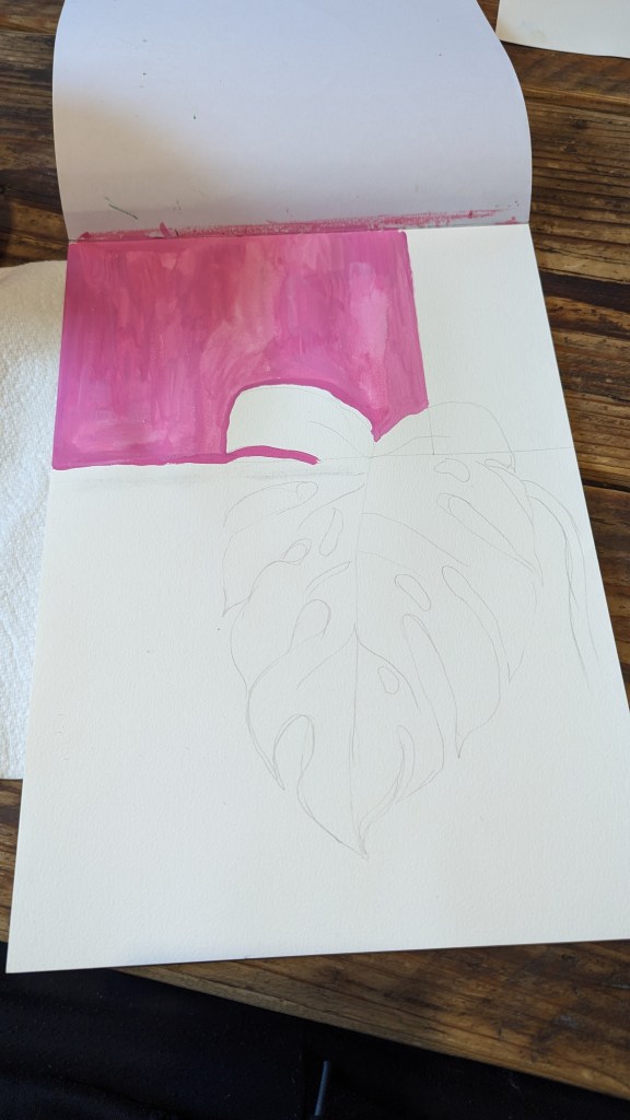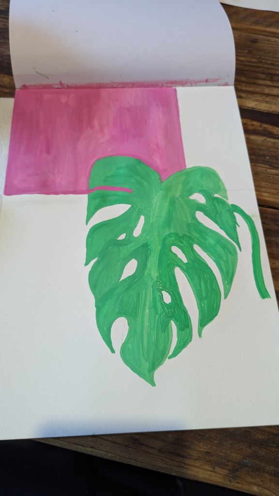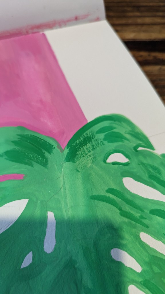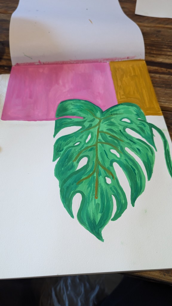 Swiss cheese plant painted in Gouche on A4 watercolour paper.