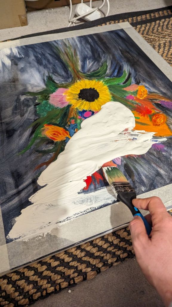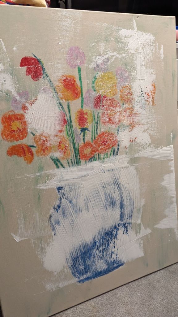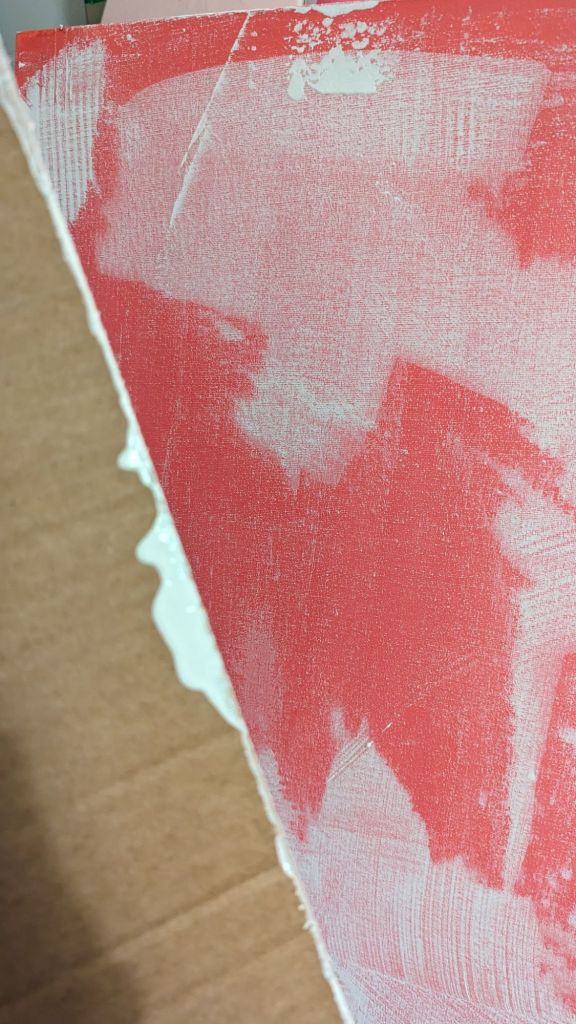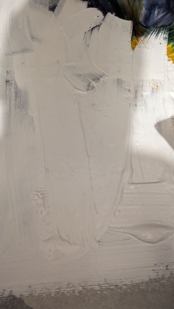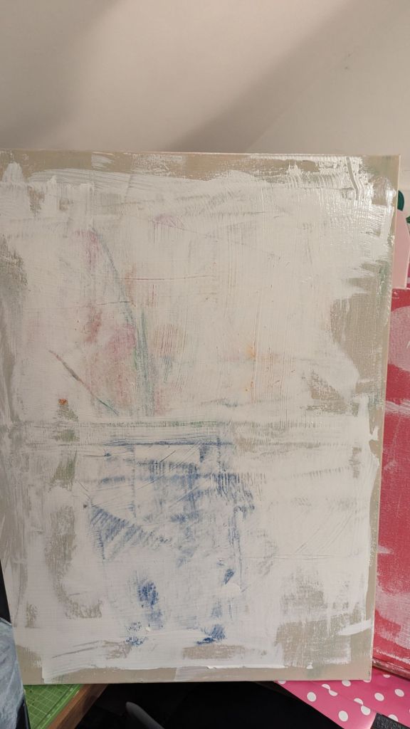 Experimenting with using house paint and a cardboard scraper to build texture ready for some oil paint.
